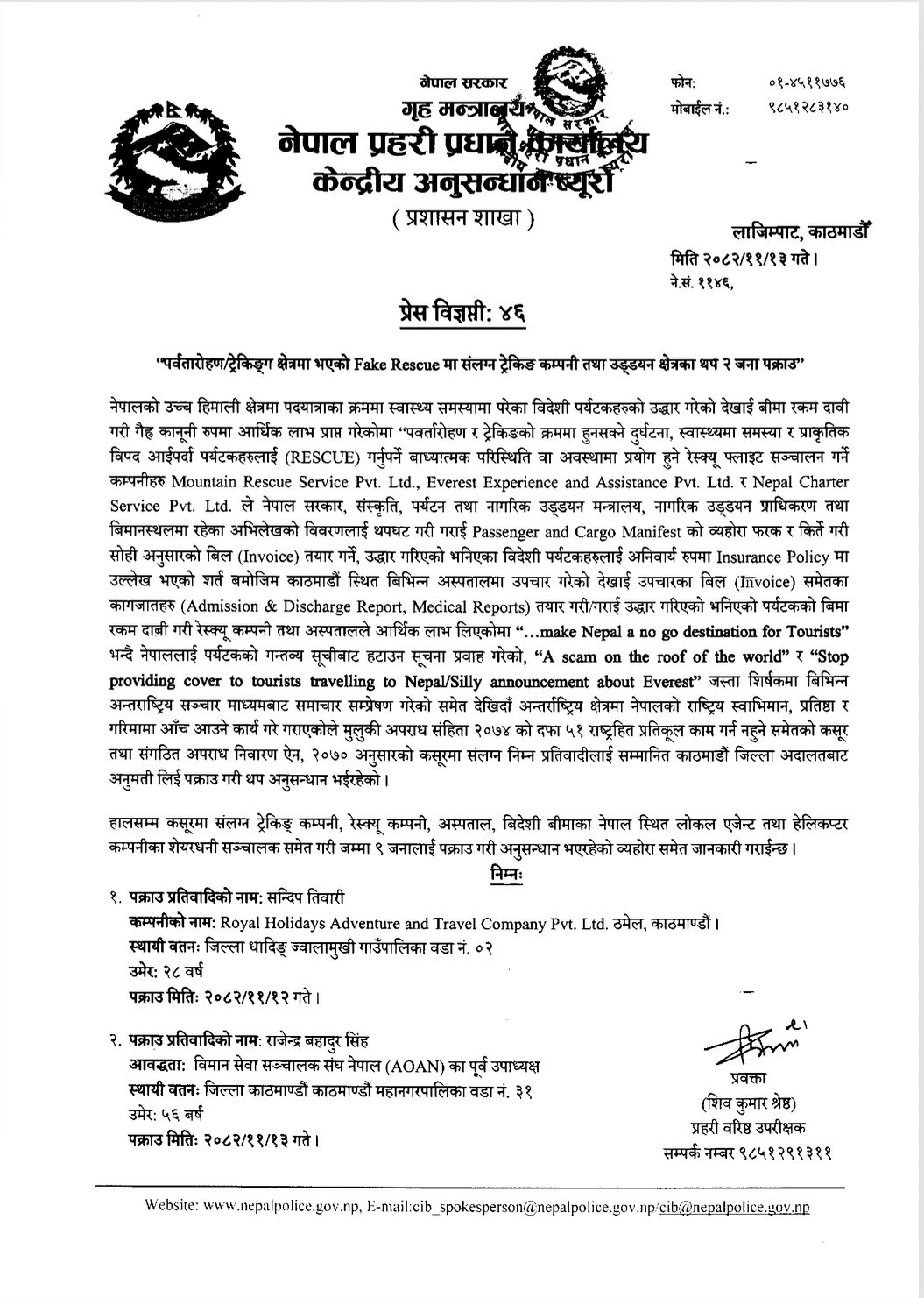 Allegations of fraudulent rescues first emerged publicly in 2018 following complaints from foreign insurance companies. A task force formed that year by then-Tourism Minister Rabindra Adhikari investigated claims that some tourism operators were inflating evacuation costs and fabricating emergencies.